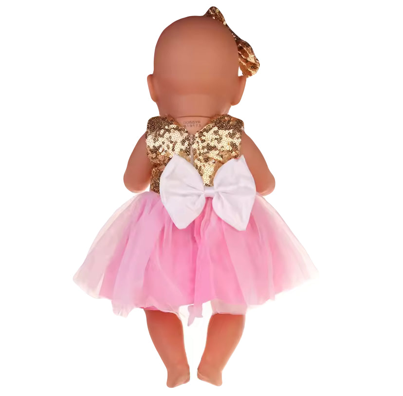 De zachte goudroze kleur en glinsterende afwerking geven de Baby Born pop een sprookjesachtige, stijlvolle look — perfect voor elke speciale gelegenheid of fantasierijk rollenspel.