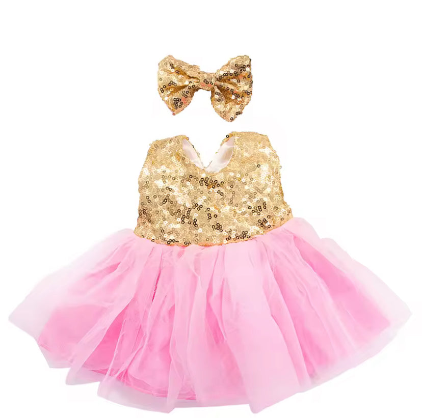 Baby Born Luxy Goud Roze Jurkje - Kleertjes ook voor Babyborn pop 36 + 43 cm